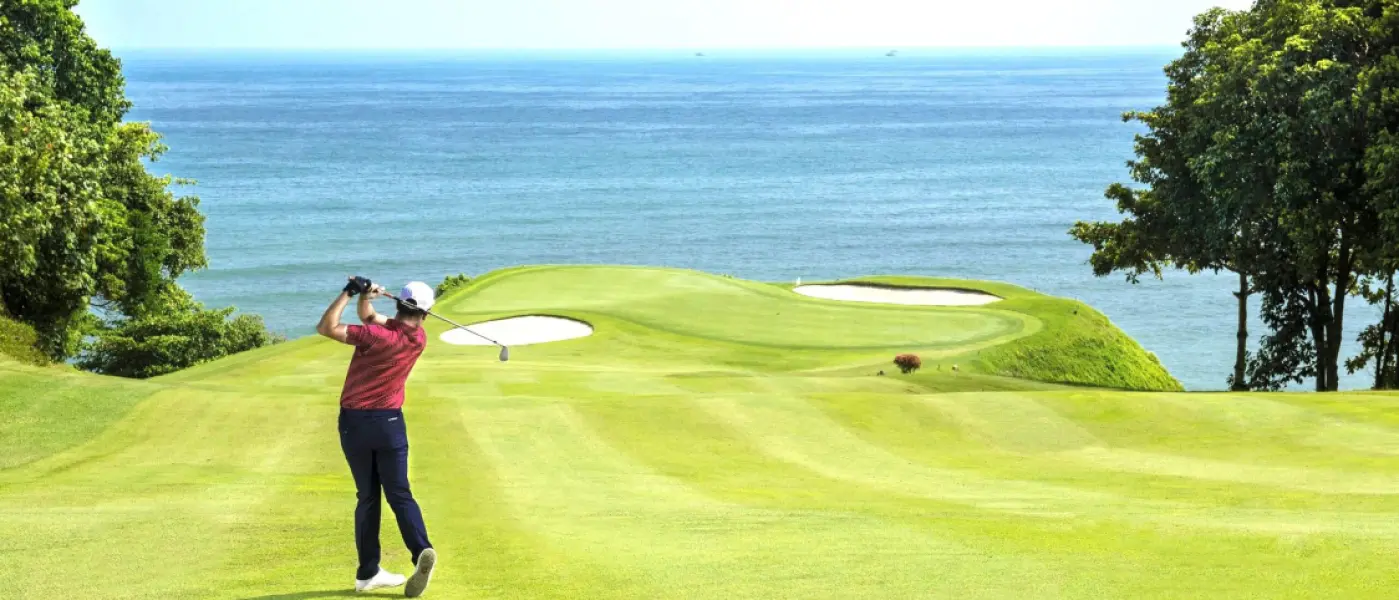 Ria Bintan Golf Club, one of Asia’s premier golf destinations, offers an exceptional experience for golf enthusiasts. Designed by Gary Player, this award-winning course has been recognized as Best Course in Indonesia (2010) and one of the top 100 courses worldwide (US Golf Digest). The Ocean Course, in particular, stands out for its breathtaking views and challenging layout.